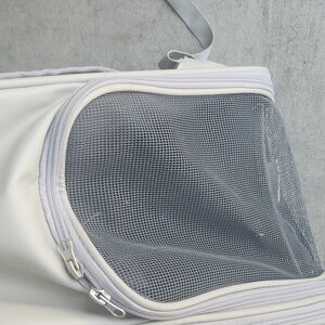 This gray dog carrier is perfect for travel, offering a comfortable and secure space for your furry friend. Its design ensures easy portability while keeping your dog safe and cozy during trips. Ideal for small to medium-sized dogs, this carrier combines style and functionality.