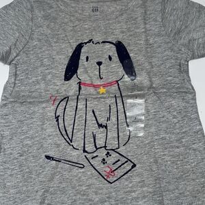 Adorable gray kids' t-shirt featuring a cute dog print. Perfect for casual wear, this GAP shirt combines comfort and style.