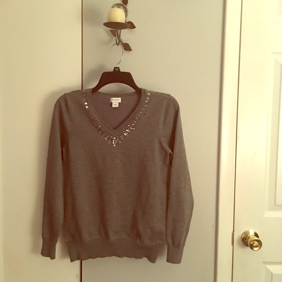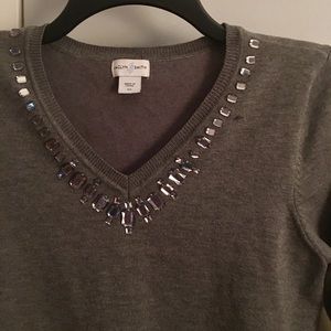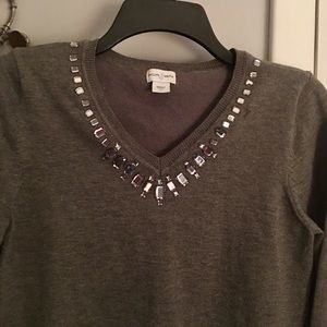 🌺Gray EUC v neck sweater with jewel embellishments🌺 3 $6-$7 listings for $15🌺