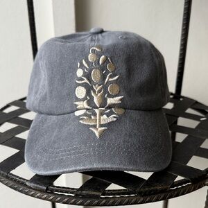 Stylish gray cap with elegant embroidery. Perfect for adding a touch of sophistication to any outfit.
