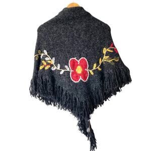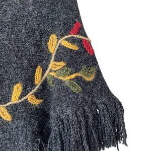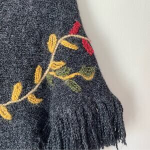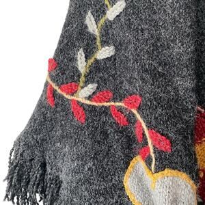 Gray Embroidered Floral Embroidered Fringe Sweater Shawl One Size in excellent condition. No tag or fabric content. It is soft and not scratchy.