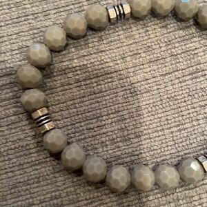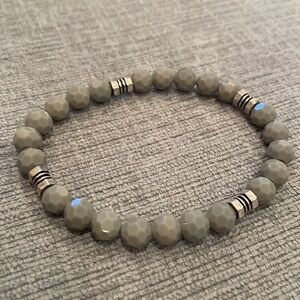 Sleek and minimalist, this handmade stretch bracelet features faceted gray 6mm crystal beads paired with polished silver-tone 8mm spacers. The perfect unisex accessory for stacking or wearing solo, this bracelet offers a subtle shine and modern style that fits any outfit.