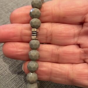 Gray Faceted Crystal Stretch Bracelet w/ Silver Accent Beads – Handmade Unisex