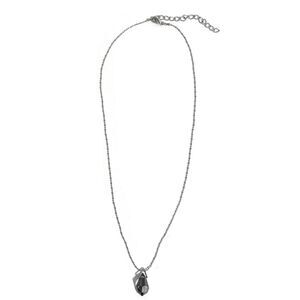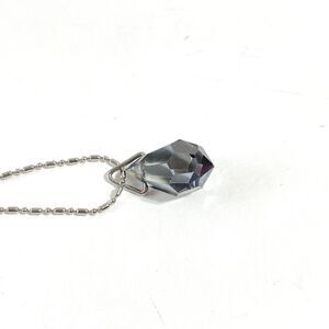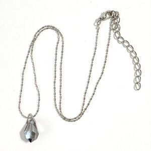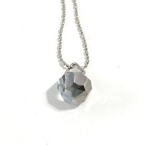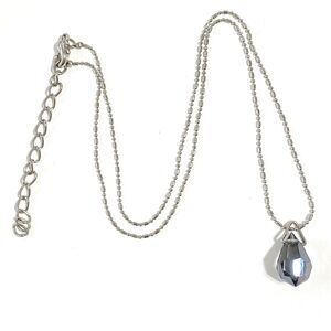 Gray Faceted Crystal Teardrop Pendant Necklace Silver Tone Dainty Chain 19”