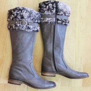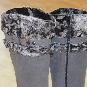 Made out of gray sheep leather with comfy waterproof lining inside.