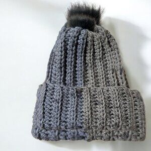 ✨ Various shades of gray knit with a soft gray faux fur pom on top.