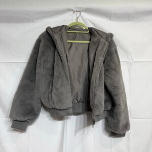 Gray Faux Fur Reversible Bomber Jacket Sz S NWOT
