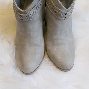 Gray Faux Nubuck Braided Stacked Heel Booties 7