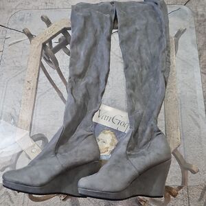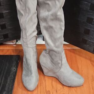 Gray Faux Suede WedgeOver Knee Boots Size 8