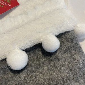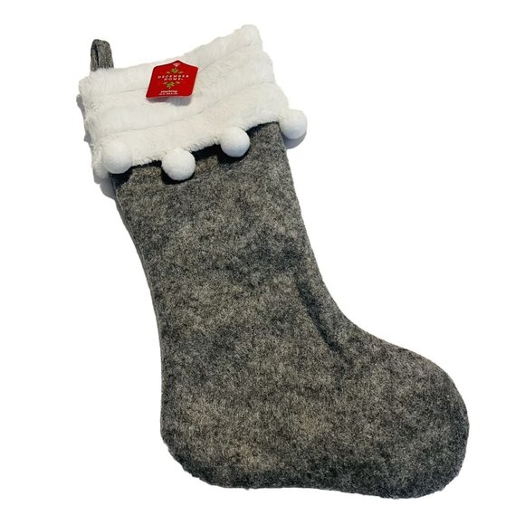 Gray Felt Christmas Stocking White Plush Pom Pom Cuff 20 Inch December Home Gift