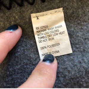 Soft & warm unisex gray fleece blanket. The bottom corner of the blanket has Healthation name logo stitched onto it in various shades of blue. The blanket is made of 100% polyester. It measures 59 inches by 49 inches. Visible black stitching as trim along the edges of the blanket. Minimal wear with use & in excellent condition!