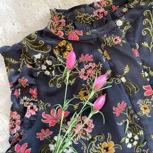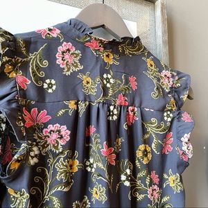 Gray Floral Ruffled Top