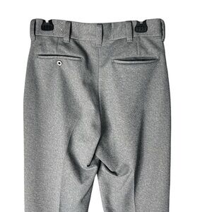These gray trousers feature a sophisticated straight leg cut and a textured wool blend material, making them ideal for business attire. The sharp crease down the front adds a touch of elegance to these full-length pants.