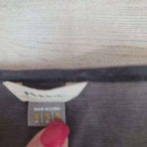 Gray Fossil short sleeve top size small. Shoulders are a sheer material. Good preowned condition with minor wear as shown in photos including minor piling.
