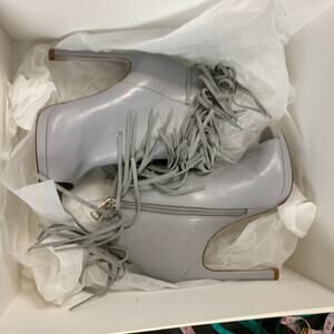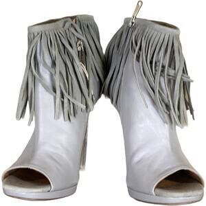 Gray Fringe Ankle Bootie Italian Designer Boot SIZE 6 Stiletto Heel Western $345 NEW
