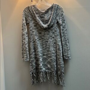 Stay cozy and stylish with this gray open-front sweater featuring a chic fringe detail. Perfect for layering and adding a touch of elegance to any outfit, also great as a beach coverup