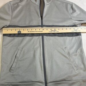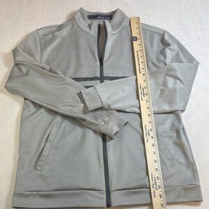 Stylish gray full-zip jacket with a sleek design. Perfect for casual wear. Golf jacket