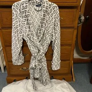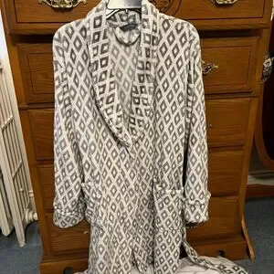 Stay cozy in this stylish gray robe featuring a chic geometric pattern. Perfect for lounging and relaxation.