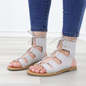 Gray Gladiator Laced-Up Bootie Style Flat Sandals