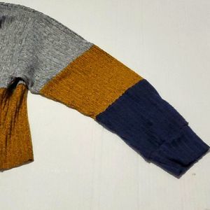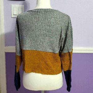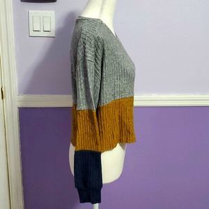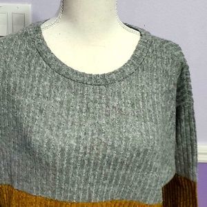 Gray, Gold & Dark Green Long Sleeve Soft Ribbed Knit Boxy Oversized Sweater