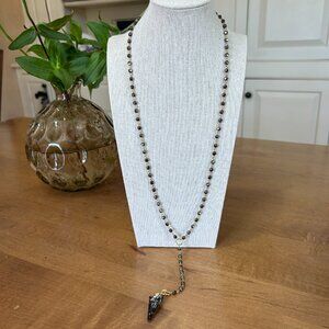 Gray & Gold Swarovski Beaded Lariat Necklace MSRP $68