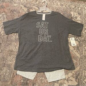 Casual gray graphic t-shirt featuring 'SATURDAY' print. Perfect for a relaxed look.