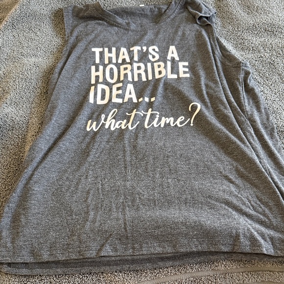 Casual gray tank top with a fun graphic print. Perfect for a relaxed look.
