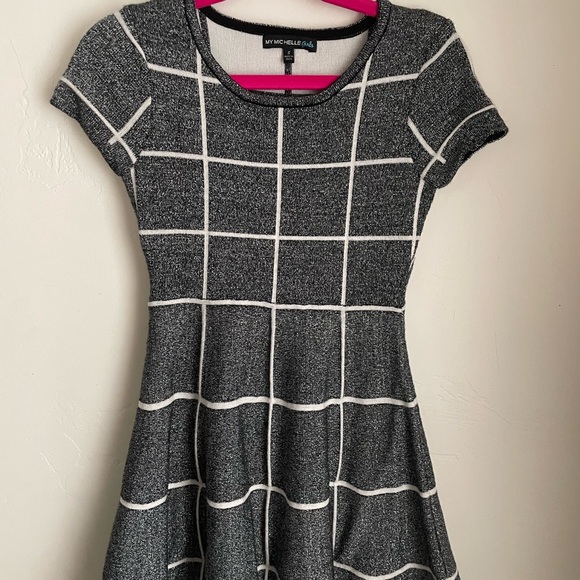 Stylish gray dress with a white grid pattern. Perfect for casual outings.