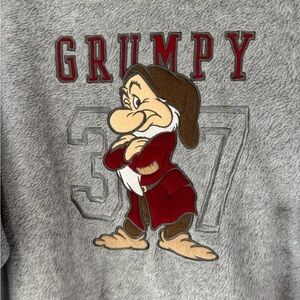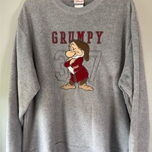 Cozy gray sweatshirt featuring Grumpy from Snow White. Perfect for casual wear.