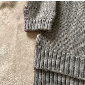 This Fair Isle sweater by H&M is gray, cream and brown. It's cropped in the front and has 3/4 sleeves. Excellent used condition. Made of blend of acrylic, wool and alpaca.
