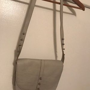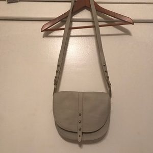 Bought this super cute adjustable light gray crossbody in Hong Kong a few years ago. It has a few Pieces of thread that are exposed but you can easily trim them.