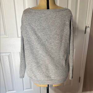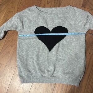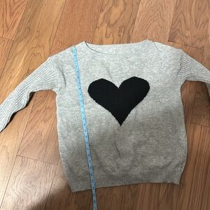 Cozy gray sweater featuring a bold black heart design. Wide neck which can be work off one shoulder or both. Very soft with 3/4 sleeves. No tag but is a large. Perfect for casual outings. Smoke free home.