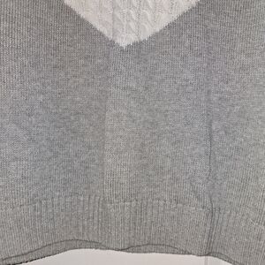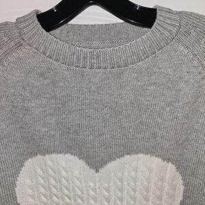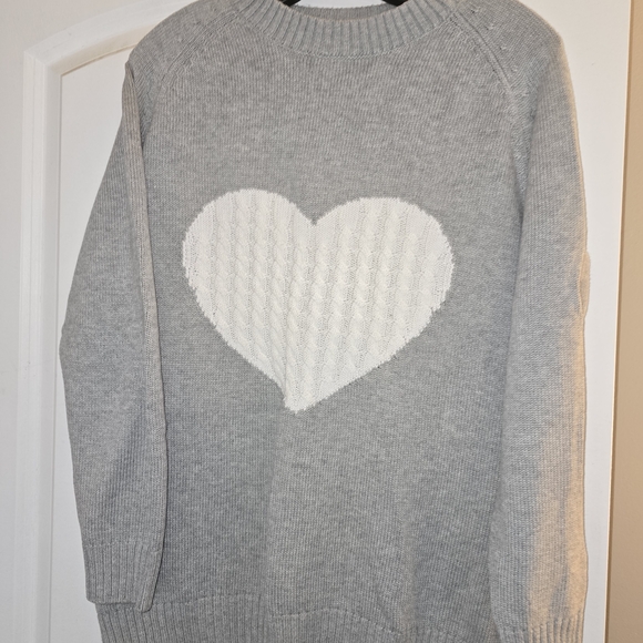 like new -- never wore it. Cozy gray sweater featuring a charming white heart design. Perfect for adding warmth and style to your wardrobe.