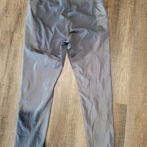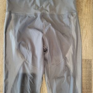 Stylish gray high-waisted leggings. Perfect for workouts or casual wear.