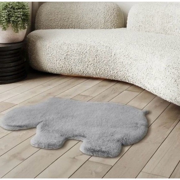 Add a playful touch to your space with this charming gray hippo-shaped rug. Perfect for nurseries or living rooms, it brings a cozy and whimsical feel to any decor.