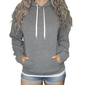 Gray Hoodie Sweater Womens XL Hooded Kangaroo Pocket Comfy Soft White Heather