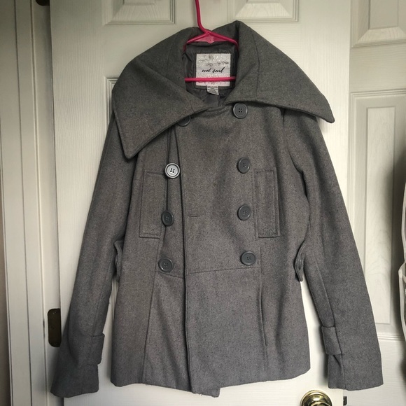 This gray jacket is perfect for cold trips and winter days! It has a small stain on the front. But very comfy!
