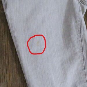 Small pale brown stain on front of right leg at the thigh as shown in last photo.
