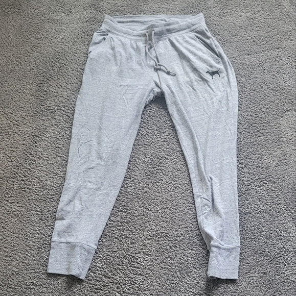 Comfortable gray jogger sweatpants with a drawstring waist and side pockets.
