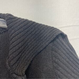 Gray Knit Longline Cardigan Sweater Ribbed Open Front Hooded Coatigan Size Large