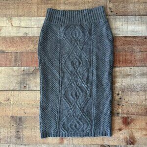 Gray Knit Pencil Skirt Moda Cable Pattern Wool Blend Ribbed Waist Size S