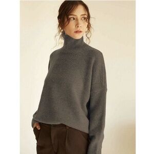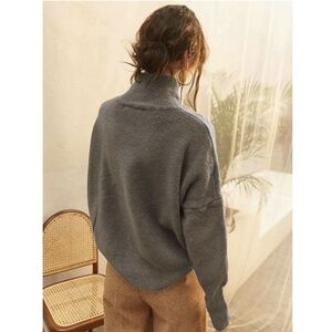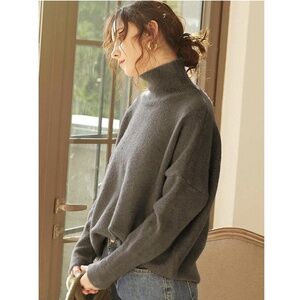 Gray Knit Turtleneck Pullover Sweater Long Sleeve Drop Shoulder