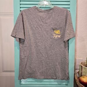 Comfortable gray t-shirt featuring a stylish yellow print. Perfect for casual wear.