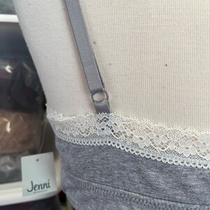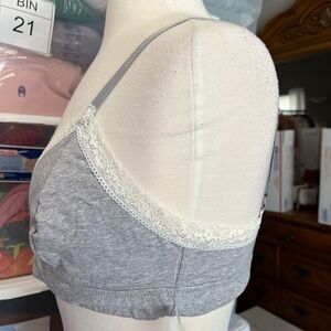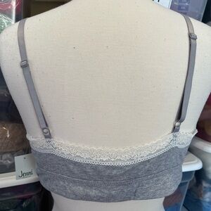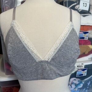 Stylish gray bralette with delicate lace trim. Perfect for layering.