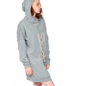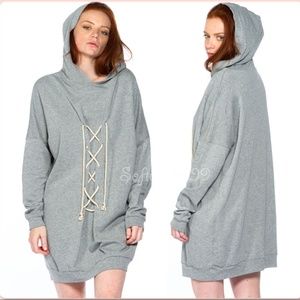 Laced Up Long Length Oversized Hooded Sweatshirt Dress. Super cute and comfy!