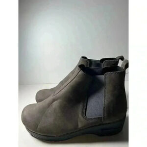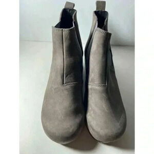 Stylish gray leather ankle boots. Perfect for any occasion. Comfortable and chic.