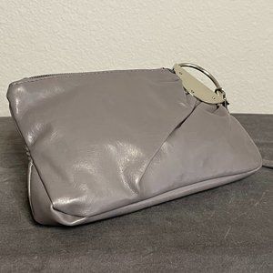 Gray Leather Clutch Purse with Chrome Details