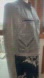 Stylish gray leather jacket featuring multiple zipper pockets. Perfect for a chic look.