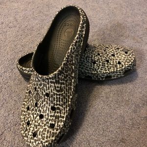Gray Leopard Crocs