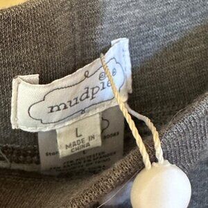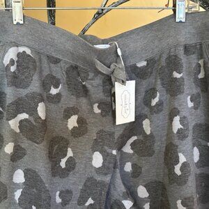 Cute, soft and comfy gray leopard print knit joggers by Mud Pie - Ladies' size Large. New with tag from a smoke-free home.